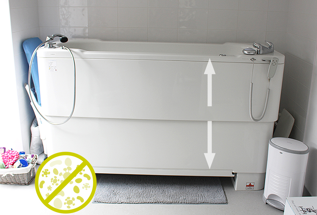 - Adaptable bathing space with moveable foot and back dividers